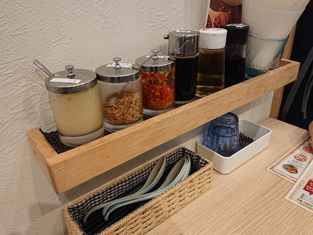 テーブル備え付けの調味料。激辛のものもあったようですが。