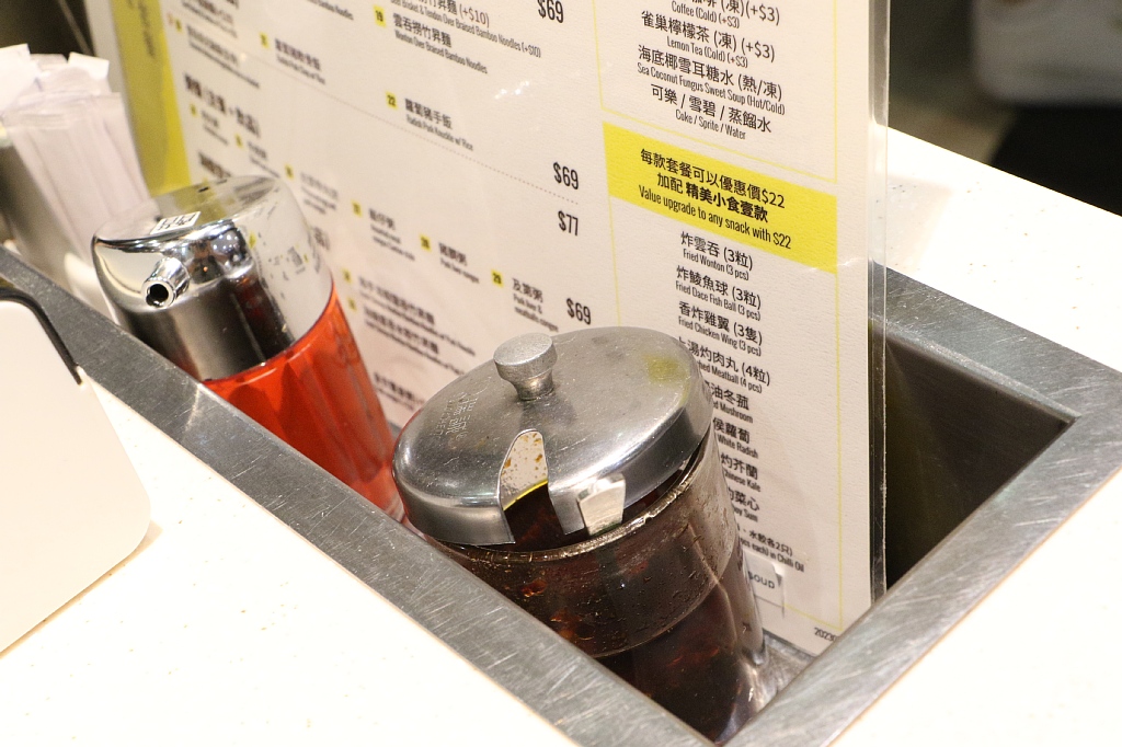店内のショットはありませんが、池記も満席寸前でした。代わりにテーブルの調味料のショットを。