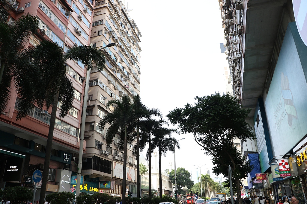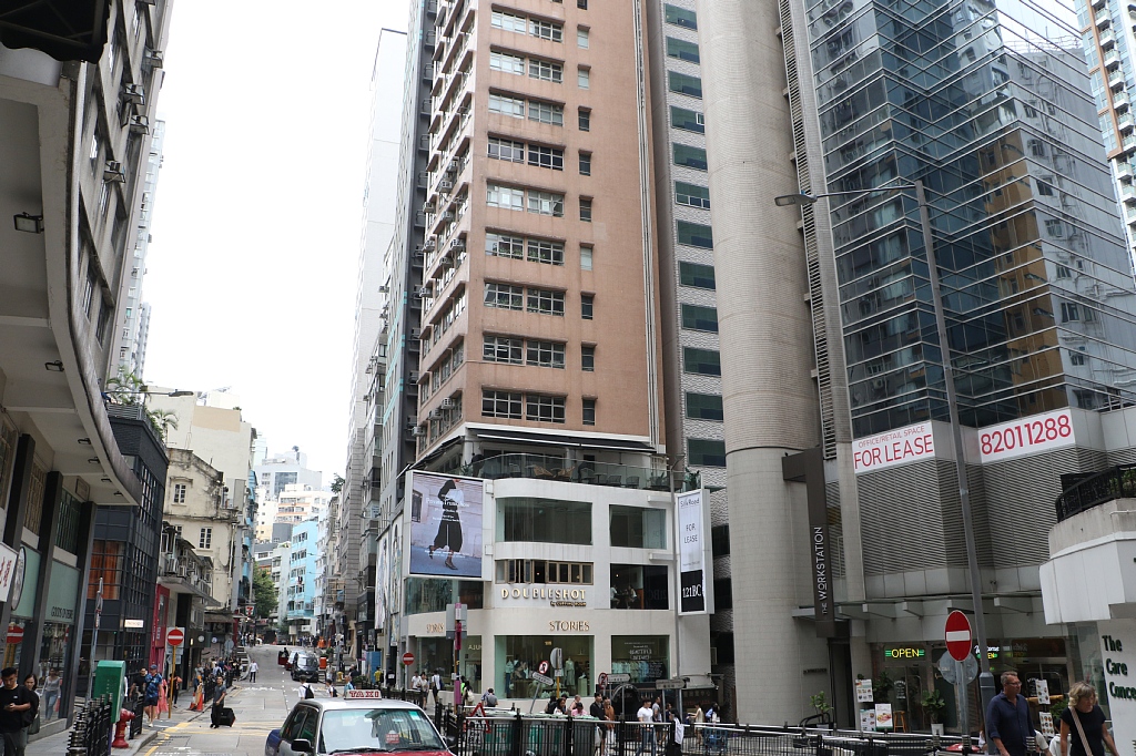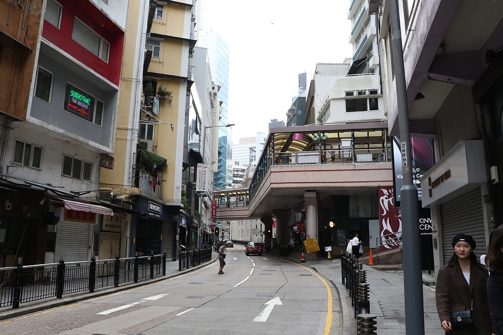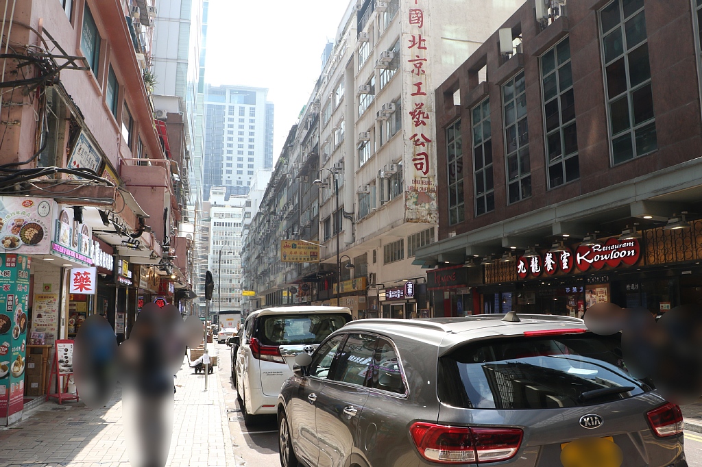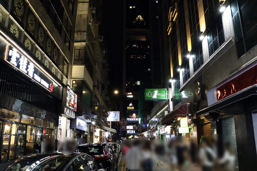 周囲の様子。ちょうどMTRの駅の上辺り、ネイザンロードから一本裏に入ったところなので繫華街のど真ん中ですね。
