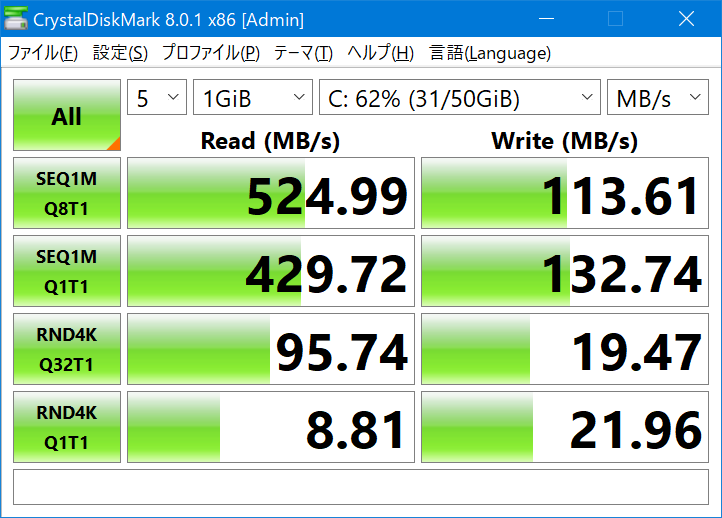 Ʊ¤¸¤¯´¹Áõ¸å¤ÎWesternDigital WDS500G2B0B¤Ç¤Î¥Ù¥ó¥Á¡£